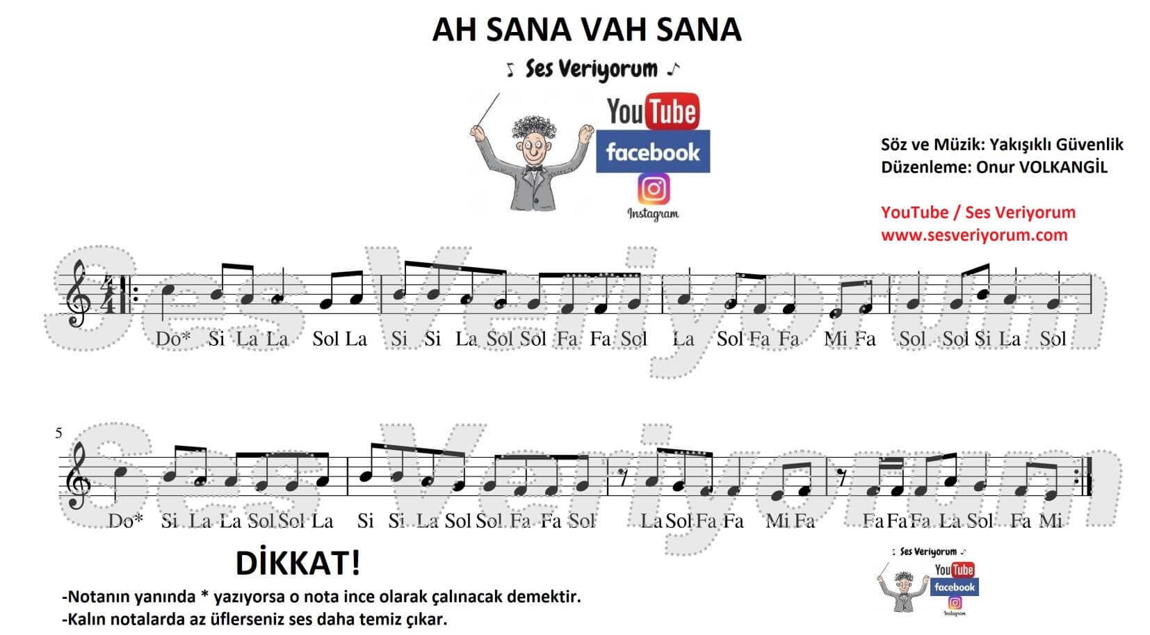 Herkese merhaba, AH SANA VAH SAHA flüt notaları sayfasına hoş geldiniz. Bu sayfamda aynı zamanda melodika notalarını da paylaştığım Ah Sana Vah Sana şarkısının flüt notalarını da yayınlıyorum. AH SANA VAH SANA flüt notalarında nasıl çalınacağınız bilmediğiniz notalar da varsa BURAYA tıklayarak tüm notaların yerlerini bulabilirsiniz. Aşağıdaki YORUM kısmından bana hemen ulaşarak tüm sorularınızı sorabilirsiniz. Herkese iyi çalışmalar...