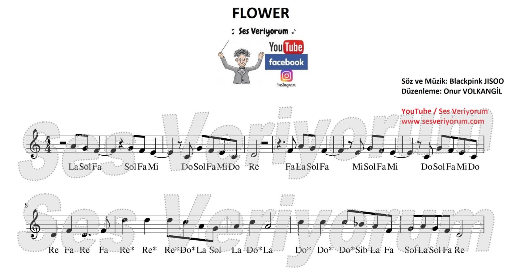 Herkese merhaba, FLOWER flüt notaları sayfasına hoş geldiniz. Dünyayı kasıp kavuran k-pop grubu Blackpink'in üyesi Jisoo'nun solosu FLOWER en doğru ve kolay flüt notaları ile bu sayfamda sizler için yayında. Eğer sizde Jisoo Flower flüt notalarını akıcı bir şekilde çalmak istiyorsanız düzenli ve bilinçi bir şekilde çalışmaya başlamalısınız. Eğer Flower flüt notaları arasında nasıl çalınacağını bilmediğiniz bir nota varsa bu sayfadan yardım alabilirsiniz. Aşağıdaki YORUM kısmından bana hemen ulaşarak tüm sorularınızı sorabilirsiniz. Herkese iyi çalışmalar...