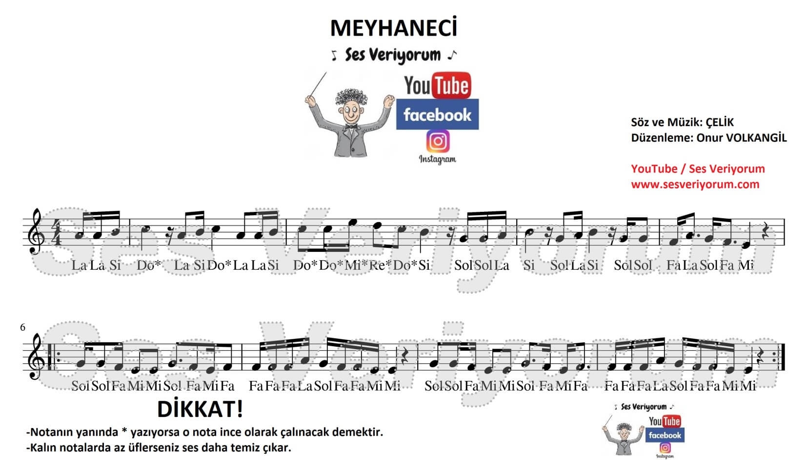 Herkese merhaba, MEYHANECİ flüt notaları sayfasına hoş geldiniz. Son zamanlarda sık sık her yerde duyduğum bir şarkı var. MEYHANECİ şarkısının eğer en doğru flüt notaları ile çalmak isterseniz kesinlikle doğru yerdesiniz. MEYHANECİ flüt notaları size ilk başta belki biraz zor gelebilir ancak düzenli çalışırsanız mutlaka başaracaksınız. MEYHANECİ flüt notalarında nasıl çalınacağınız bilmediğiniz notalar da varsa BURAYA tıklayarak tüm notaların yerlerini bulabilirsiniz. Aşağıdaki YORUM kısmından bana hemen ulaşarak tüm sorularınızı sorabilirsiniz. Herkese iyi çalışmalar...