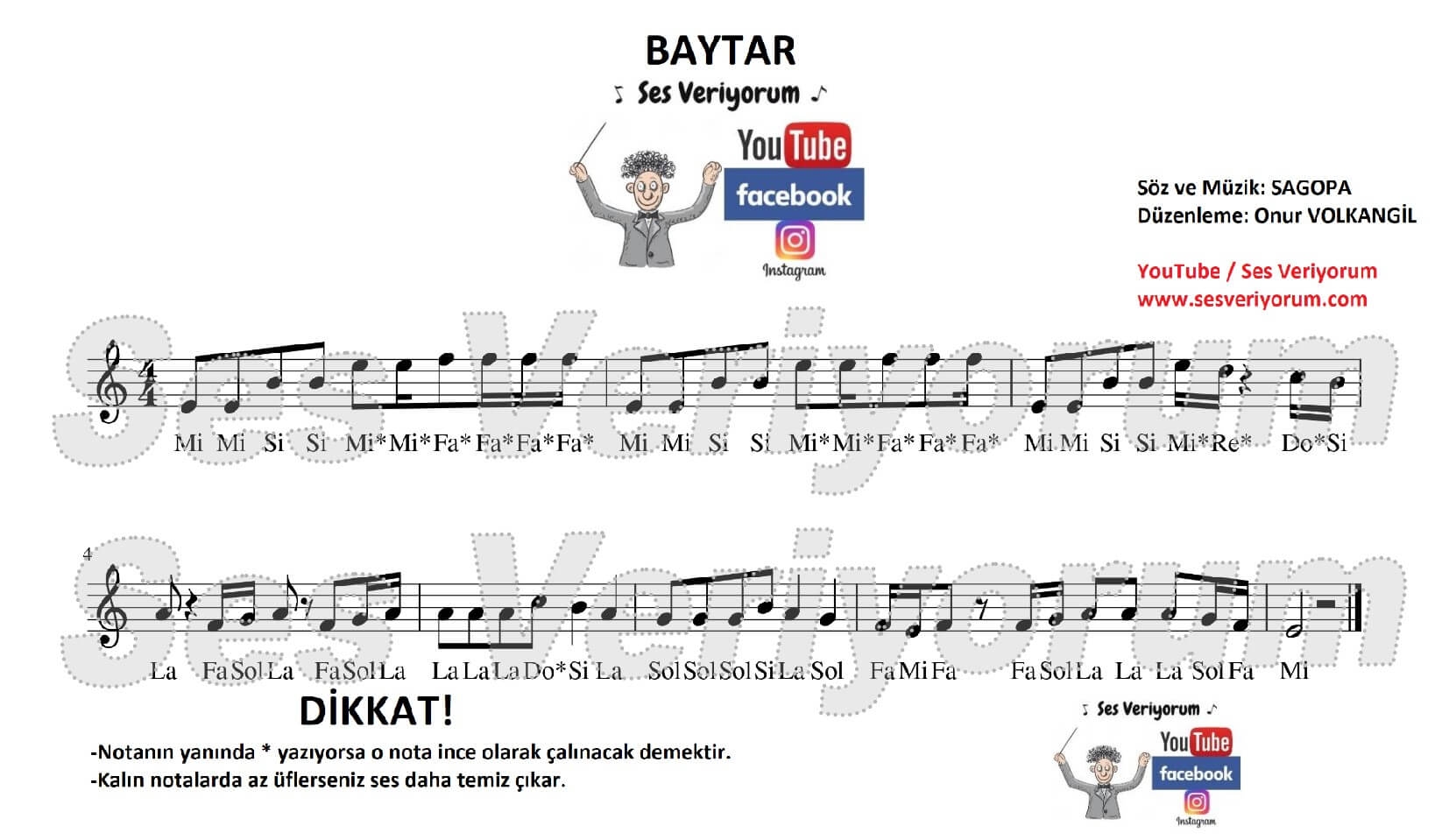 Herkese merhaba, BAYTAR flüt notaları sayfasına hoş geldiniz. Melodika notalarını henüz paylaştığım BAYTAR şarkısı şimdi bu sayfamda da sizler için yayında. BAYTAR flüt notalarında nasıl çalınacağınız bilmediğiniz notalar da varsa BURAYA tıklayarak tüm notaların yerlerini bulabilirsiniz. Aşağıdaki YORUM kısmından bana hemen ulaşarak tüm sorularınızı sorabilirsiniz. Herkese iyi çalışmalar...