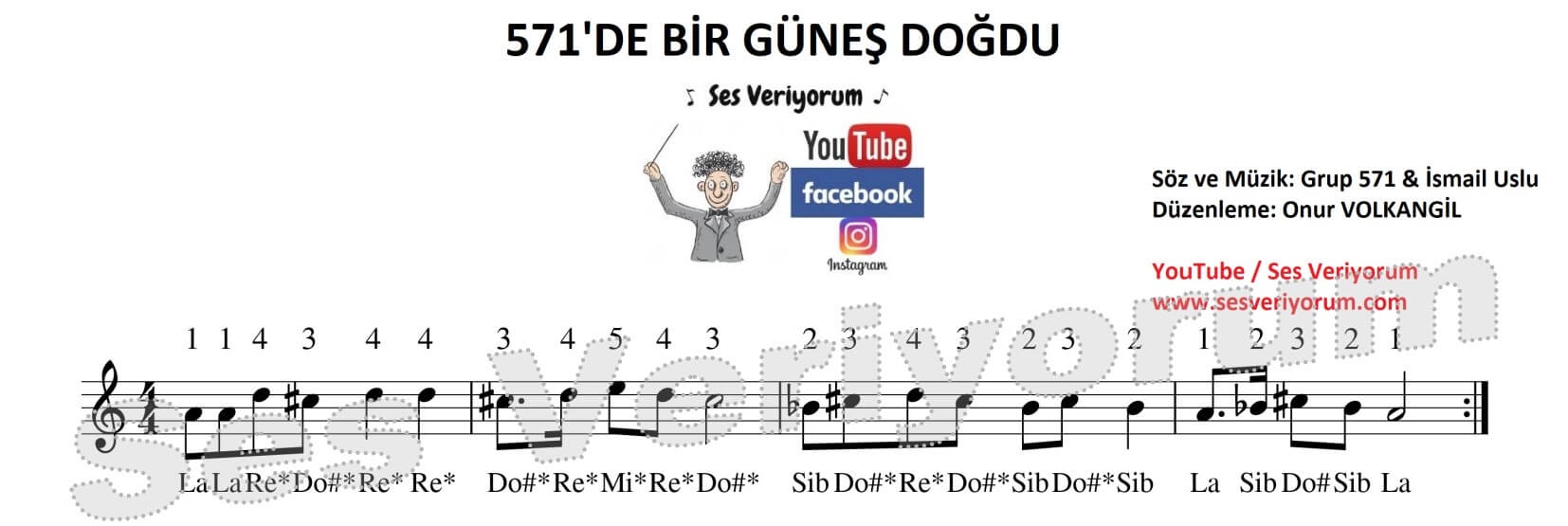 Herkese merhaba, 571'de Bir Güneş Doğdu melodika notaları sayfasına hoş geldiniz. Bu sayfamda YouTube kanalımın yorumlarında sıklıkla istenen 571'de Bir Güneş Doğdu şarkısını en doğru melodika notaları ile yayınlıyorum. 571'de Bir güneş Doğru şarkısı melodika ile çalmak için oldukça kolay. Hatta melodika çalmaya yeni başlayanlar bile düzenli ve bilinçli çalıştıkları taktirde rahatça çalmayı öğrenebilirler. Yine de aşağıdaki YORUM kısmından bana hemen ulaşarak soru sormak isterseniz lütfen çekinmeyin. Hepinize iyi çalışmalar...