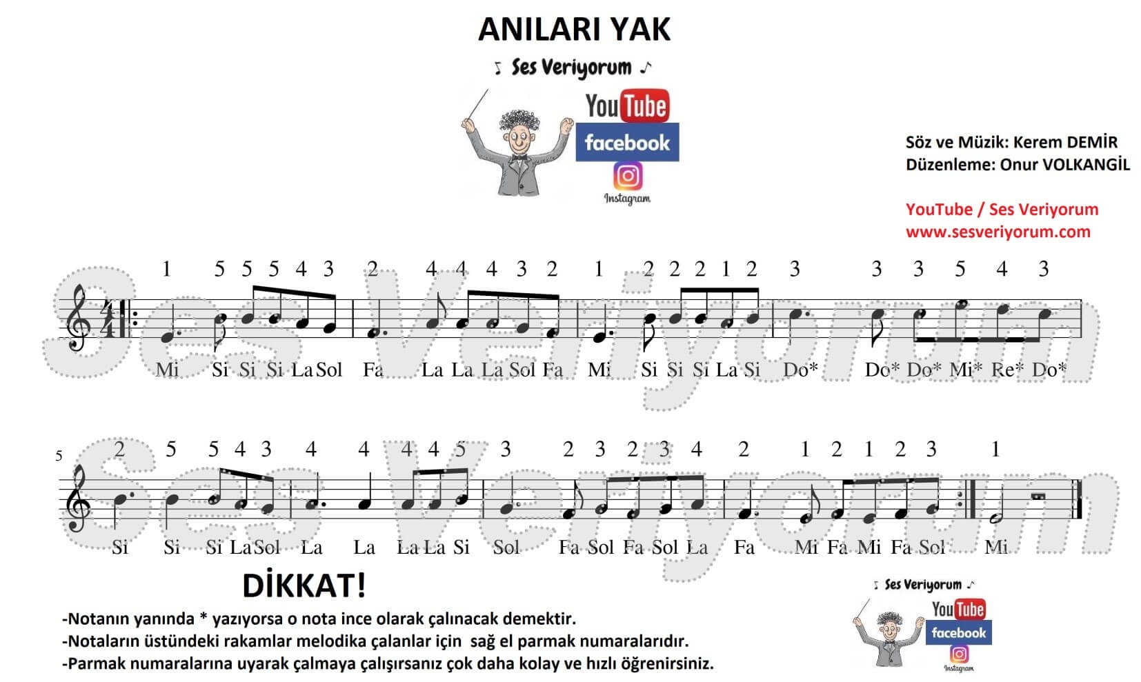 Herkese merhaba, ANILARI YAK melodika notaları sayfasına hoş geldiniz. Bu sayfamda son zamanlarda özellikle TikTok videolarının arkasında çalan bir şarkıyı melodika notaları ile çalarak sizlere için yayınladım. Anıları Yak melodika notaları en doğru ve kolay haliyle bu sayfamda sizler için yayında. Eğer Anıları Yak melodika notalarını bir an önce çalmak istiyorsanız hemen başlayın. Ancak lütfen dikkatli olun ve yavaş çalışın. Aşağıdaki YORUM kısmından bana hemen ulaşarak tüm sorularınızı sorabilirsiniz. Herkese iyi çalışmalar...