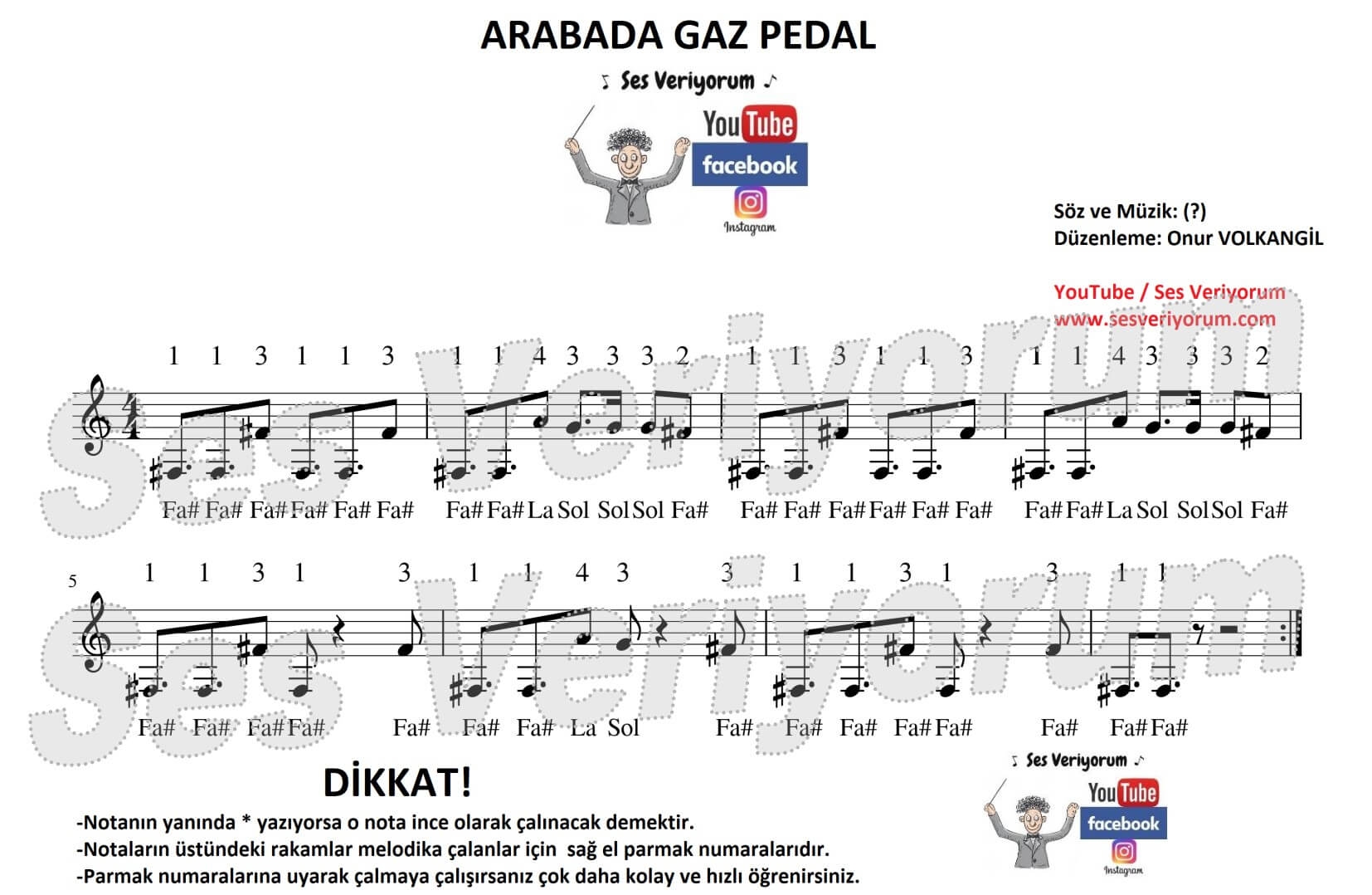 Herkese merhaba, ARABADA GAZ PEDAL melodika notaları sayfasına hoş geldiniz. Son zamanlarda Muharrem İnce'nin sosyal medyada dans görüntüleri arkasında beğeni toplayan ARABADA GAZ PEDAL şarkısı, şimdi en doğru melodika notaları ile birlikte bu sayfamda yayında. Arabada Gaz Pedal melodika notalarını çalmak inanılmaz kolay. Aşağıdaki YORUM kısmından bana hemen ulaşarak tüm sorularınızı sorabilirsiniz. Herkese iyi çalışmalar...