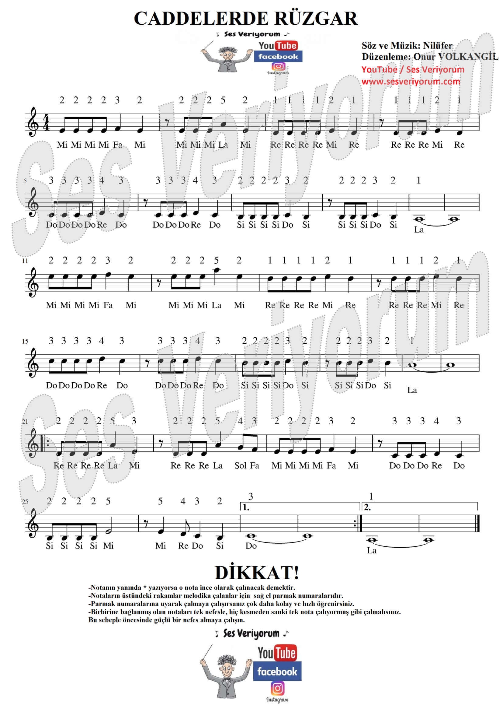 Herkese merhaba, Ses Veriyorum Caddelerde Rüzgar melodika notaları sayfasına hoş geldiniz. Hemen hemen hepimizin bildiği bir şarkı olan Caddelerde Rüzgar'ı, en kolay melodika notalarıyla sizlere öğretmeye çalıştım. Melodika notaları ile Caddelerde Rüzgar şarkısını çalmak gerçekten çok kolay. Sadece birazcık dikkat ve sabır gerekiyor. Eğer Caddelerde Rüzgar melodika notalarıyla ilgili bir sorunuz olursa sayfaının aşağısındaki yorum kısmından bana soru sorabilirsiniz. Eğer Caddelerde Rüzgar şarkısının melodika değil de flüt notalarını arıyorsanız buradan ulaşabilirsiniz. Herkese iyi çalışmalar...
