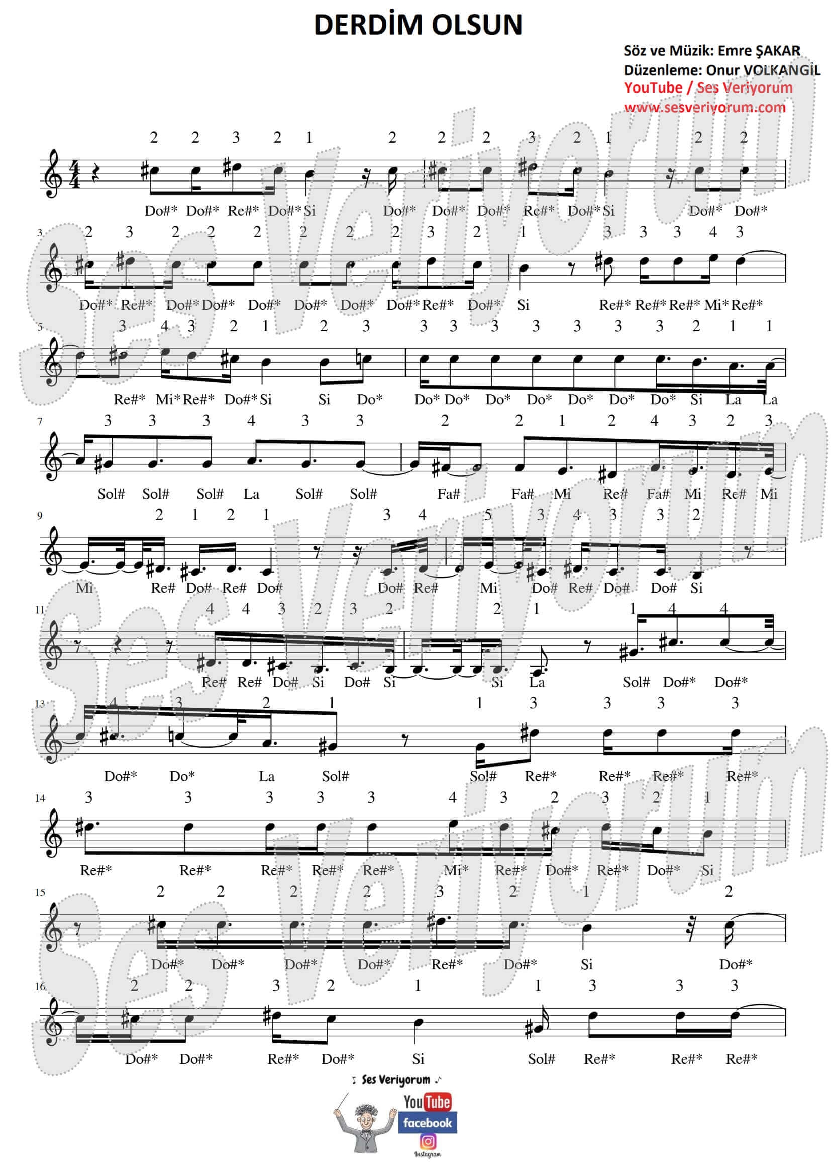 Herkese merhaba, Derdim Olsun notaları sayfasına hoş geldiniz.