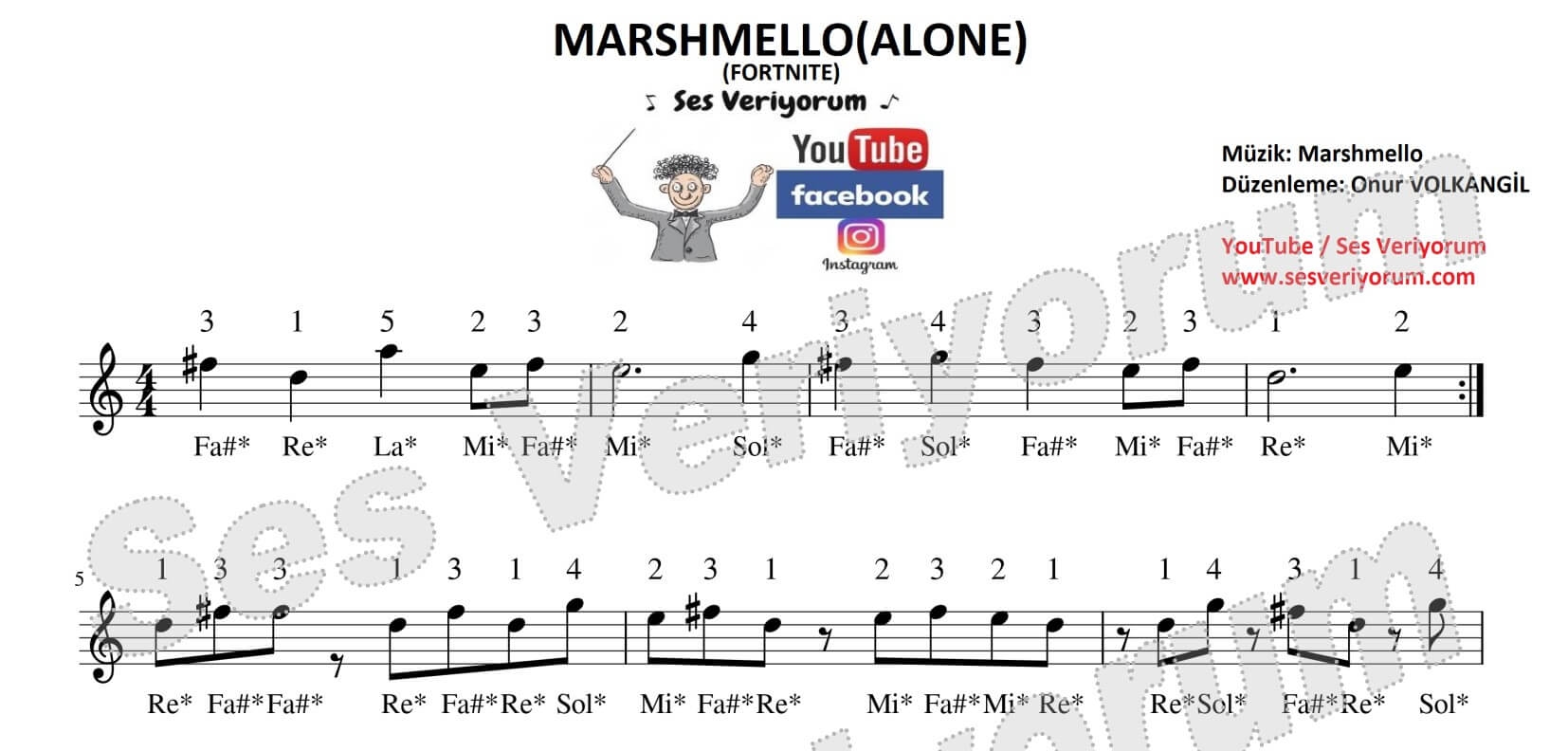Herkese merhaba, Fortnite Müziği melodika notaları sayfasına hoş geldiniz. Ses Veriyorum sitesi, en güncel ve en kolay melodika notaları ile sizler için melodika notaları yayınlamaya devam ediyor. Bu sayfada oyun müziklerinden Fortnite müziği Marshmello Alone şarkısını, kendi hazırladığım melodika notaları ile sizler için çaldım ve yayınladım. İster videoyu izleyerek isterseniz de melodika notası görselinden kolaylıkla öğrenebileceğiniz bu şarkı gibi bir çok oyun müziği melodika notaları için YouTube kanalıma göz atmanızı tavsiye ederim. Aşağıdaki yorum kısmından her türlü sorunuzu bana sorabilirsiniz. Herkese iyi çalışmalar...