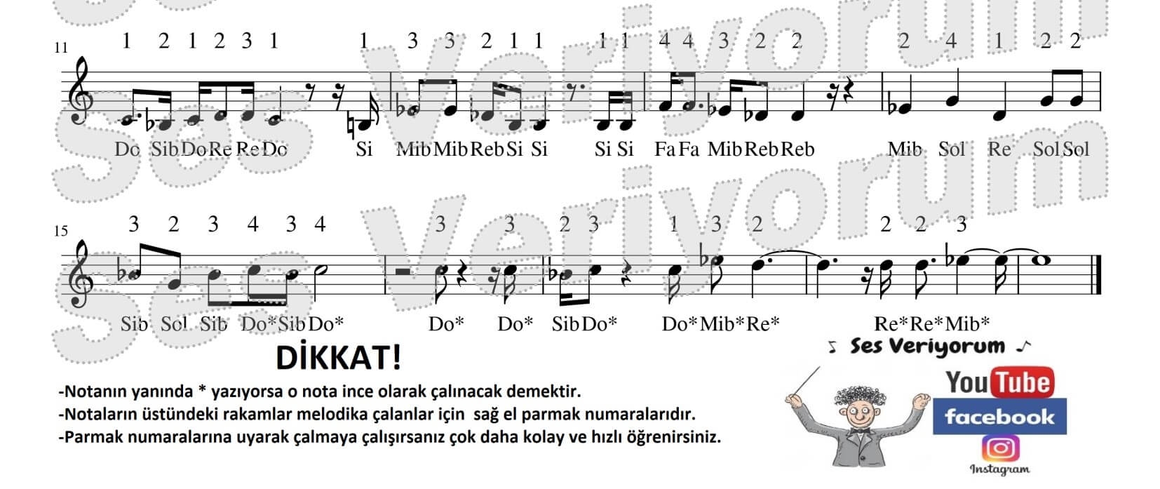 Herkese merhaba, Gamonya şarkısı melodika notaları sayfasına hoş geldiniz. Bu sayfamda eğlenceli ve neşeli sinema filmi Gamonya'nın film müziğini en doğru ve kolay öğrenilen melodika notaları eşliğinde yayınlıyorum. Gamonya şarkısını melodika notaları ile çalabilmek için öncelikle biraz dikkatli olmanız ve düzenli çalışmanız gerekiyor. Çünkü şarkı müzikal olarak biraz zengin bir şarkı. Melodika notalarında bol bol ses değiştirici işaretler mevcut, bu da belki işinizi biraz zorlaştırabilir. Ancak merak etmeyin, Ses Veriyorum sizin öğrenmeniz için her şeyi düşündü. Öncelikle eğer melodika çalmak konusunda çok iyi değilseniz veya melodika çalmayı yeni yeni öğreniyorsanız lütfen bu sayfamı ziyaret edin ve melodika çalmakla ilgili tüm detayları gözden geçirin. Daha sonra size sadece o sayfada anlattıklarımı uygulayarak düzenli ve sabrederek çalışmak kalıyor. Bana ulaşmak ve soru sormak için lütfen aşağıdaki yorum kısmını kullanın. Herkese iyi çalışmalar diliyorum...