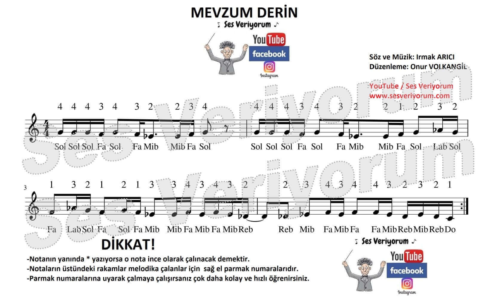 Herkese merhaba, Mevzum Derin şarkısı melodika notaları sayfasına hoş geldiniz. Bu sayfamda sizler için söz ve müziği Irmak Arıcı'ya ait olan Mevzum Derin şarkısını kendi hazırladığım melodika notaları ile yayınlıyorum. Mevzum Derin şarkısını melodika notaları ile kusursuz bir şekilde çalabilmeniz için dikkat etmeniz gereken birkaç konu var. Bunları bu sayfayı inceleyerek detaylı bir şekilde öğrenebilirsiniz. Daha sonrasında ise çalmak istediğiniz tüm şarkıları emin olun çok daha kısa bir sürede çalabileceksiniz. Ancak o sayfada anlatılan her şeyi eksiksiz olarak uygulamanız gerekiyor. Aşağıdaki yorum kısmından soru ve düşüncelerinizi bana yazabilirsiniz. Herkese iyi çalışmalar...