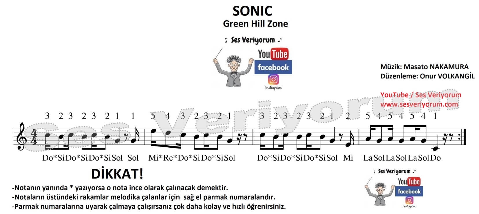 Herkese merhaba, Sonic müziği melodika notaları sayfasına hoş geldiniz. Bu sayfamda epeydir YouTube kanalımın yorumlarında istenen Sonic müziğini sizlere en kolay öğrenilen melodika notaları ile öğretmek istedim. Sonic müziği harika bir müzik. Çalması da dinlemesi kadar eğlenceli kesinlikle. Zorluk seviyesi olarak 10 üzerinden 4 diyebilirim. Eğer melodikaya yeni başladıysanız ve Sonic müziğini melodika notaları ile çalmak istiyorsanız düzenli çalışmanız gerekiyor. Aşağıdaki YORUM kısmından bana hemen ulaşabilir ve tüm sorularınızı sorabilirsiniz. Herkese iyi çalışmalar...